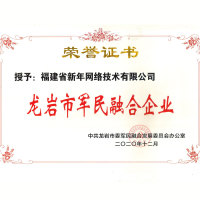 龍岩市軍民(mín)融合企業榮譽證書(shū)